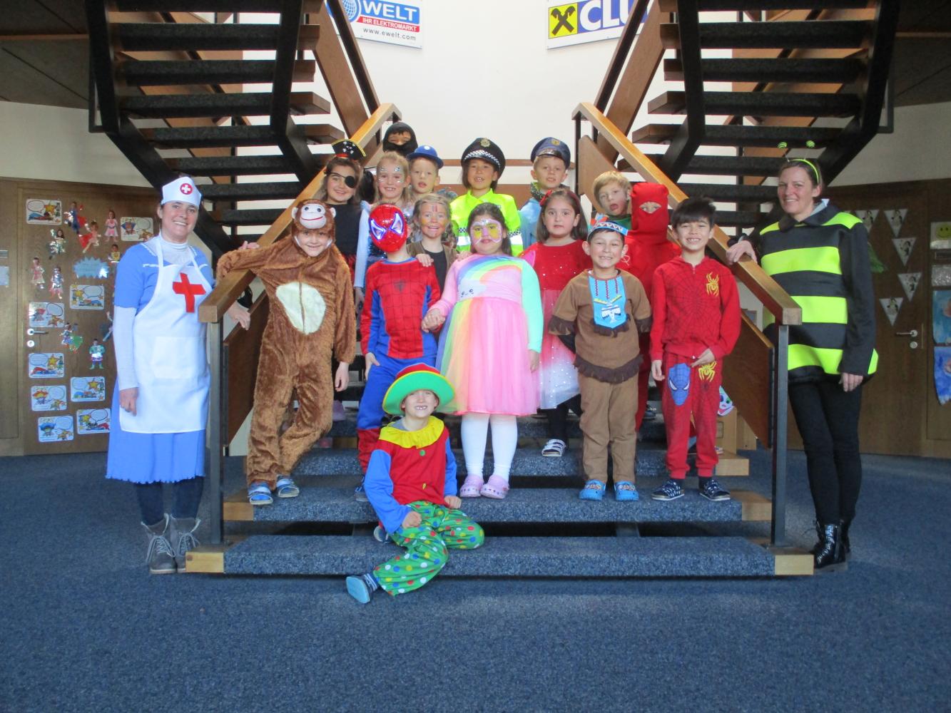 Nachdem die 1. Klasse beim Schulfasching (Unsinniger Donnerstag) nicht dabei sein konnte, hatten die Kinder heute, passend zum Faschingsdienstag, ihre eigene Faschingsfeier! Auch sie kamen bereits verkleidet in die Schule, mussten aber die ersten 3 Stunden zuerst noch fleißig lernen!