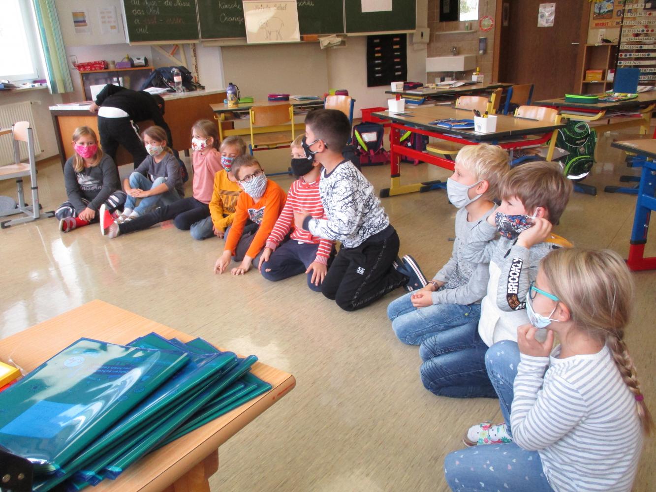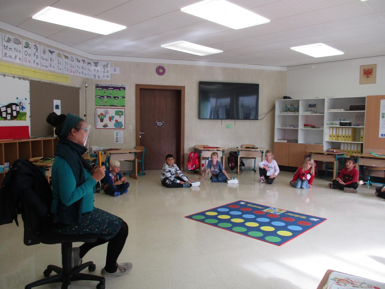 Frieda Schaf von Barbara Singer 08. Oktober 2020 1. 2. Heute kam Frau Wenter vom Kulturservice in die 2. und 1. Klasse auf Besuch. Sie las den Kindern die Geschichte "Frieda Schaf" vor. Die Kinder hörten begeistert zu, und waren auch mit großem Eifer bei der Mitmachgeschichte dabei!