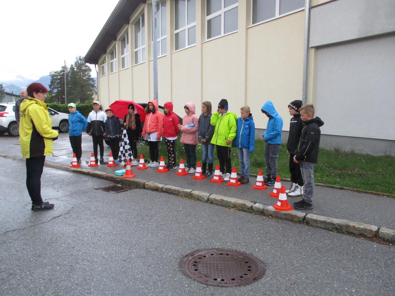 Im praktischen Teil durften die Kinder dies dann selbst ausprobieren. Zuerst mussten sie den Bremsweg schätzen, was den meisten Kindern nicht gelang! Der Großteil vermutete einen viel kürzeren Bremsweg und im realen Straßenverkehr, hätte dies zu schweren Unfällen geführt. Das war für die Kinder eine wirklich bedeutende Erfahrung!