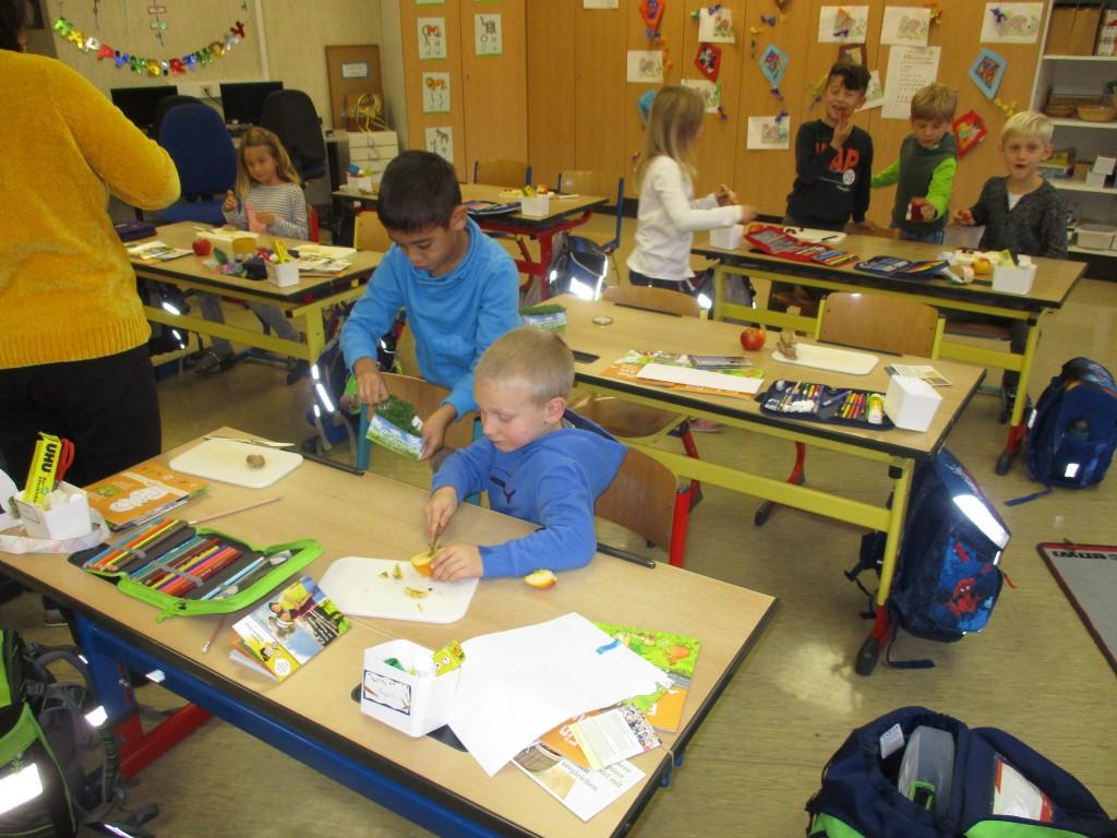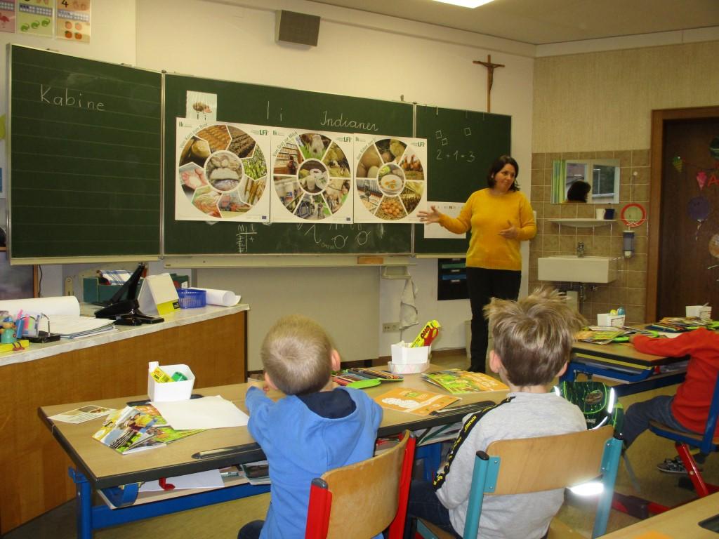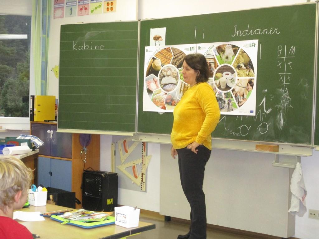 Christine Tschol besuchte die 1. Klasse um den Kindern das Thema "Landwirtschaft" näher zu bringen. "Woher kommt die Milch?" "Hühner - Eier - Küken!" "Vom Korn zum Brot!" Das alles waren Fragen bzw. Themen, die erklärt und besprochen wurden. Als Abschluss wurde dann noch gemeinsam eine gesunde Jause zubereitet.