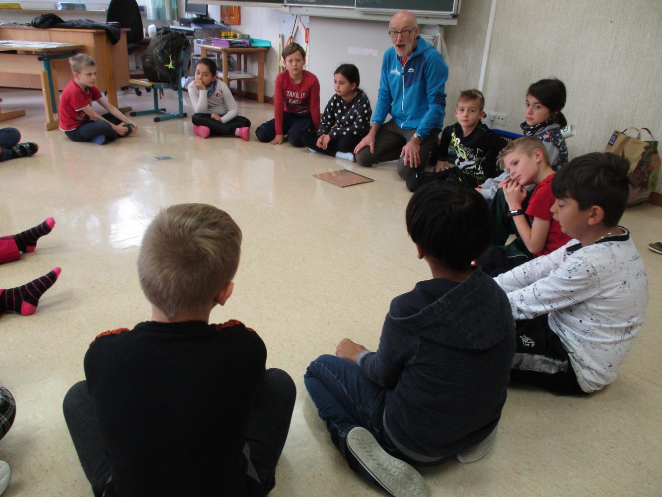 Heute lernten die Kinder der 3. Klasse bei der Naturführung vieles zum Thema "Erde". Naturführer Werner erklärte Wissenswertes über die Erde und die Planeten. Ebenso wurden Regenwürmer mal genauer mit einer Lupe betrachtet. Im Freien wurde dann der Aufbau des Bodens untersucht und in einer Flasche nachgebaut. Somit bauten die Kinder auch einen natürlichen Wasserfilter. Zum Schluss machten sie sich noch auf die Suche nach Bodentieren.