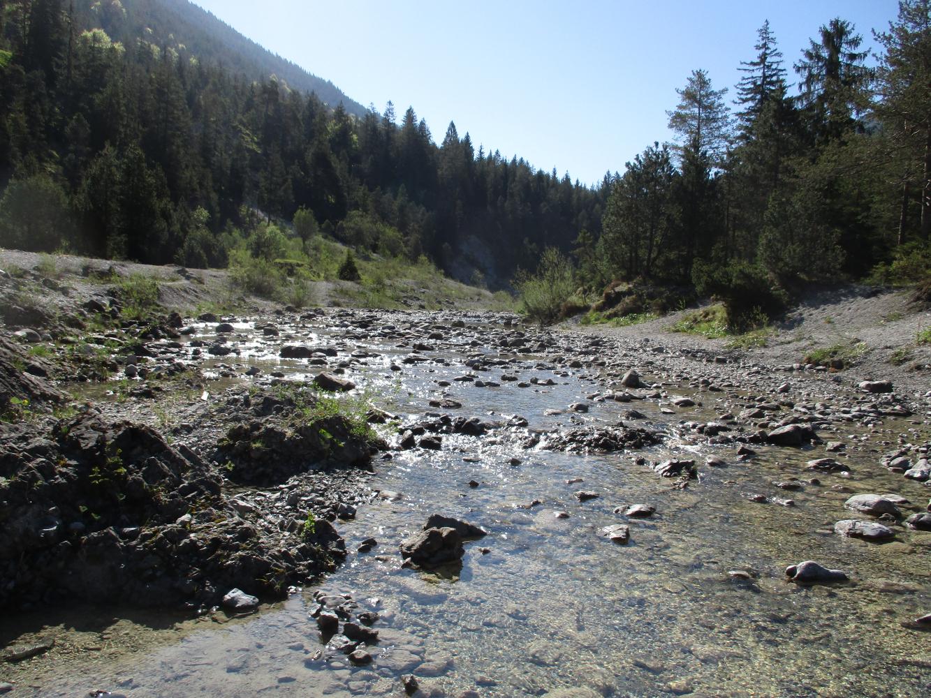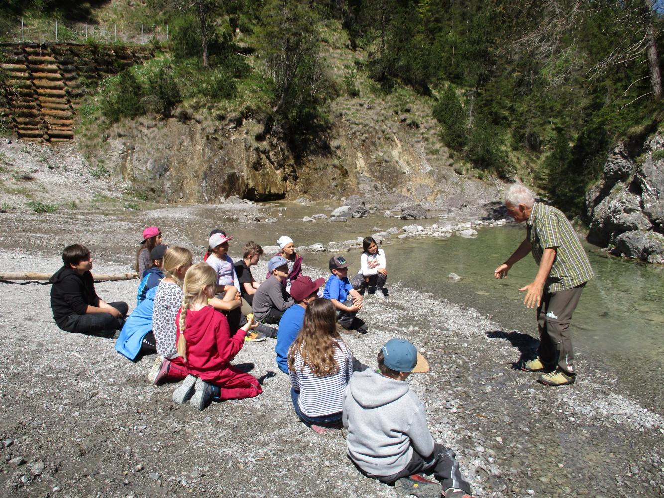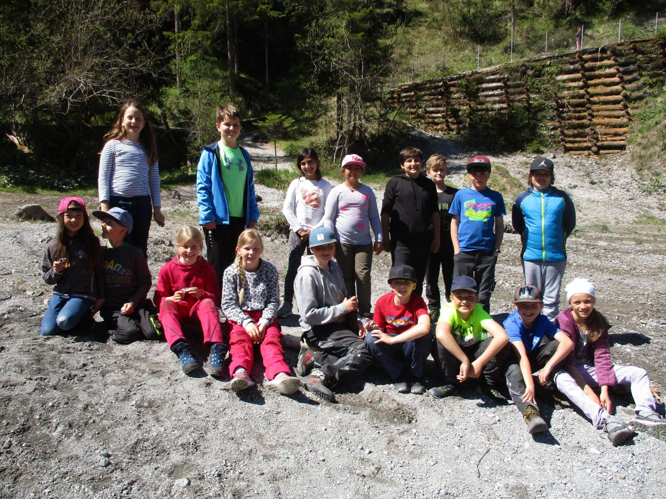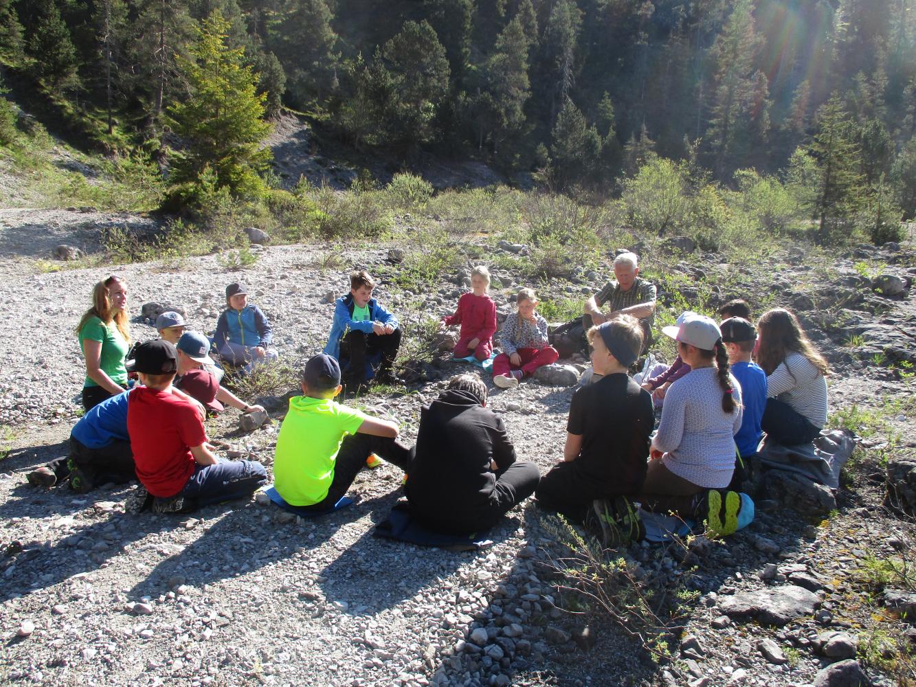 Gemeinsam mit den Naturführern Sabine und Emil ging es in die Stuibenfälle. Dort erfuhren die Kinder über die Entstehung der Alpen, lernten verschiedene Gesteinsarten kennen und durften an dem Ölschiefer (Gestein bei der Archbach) "schnuppern".