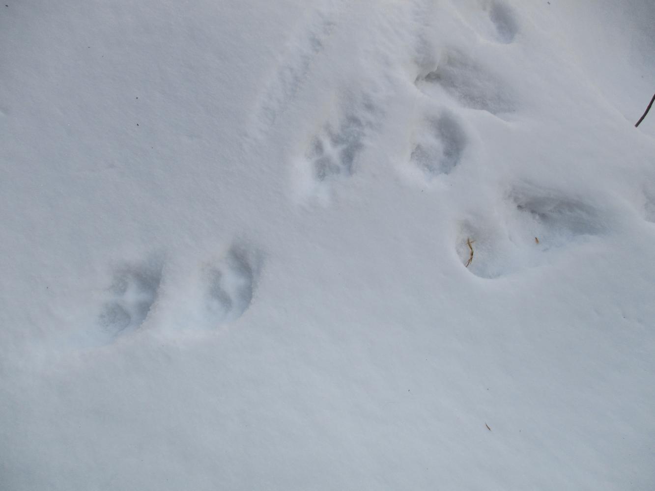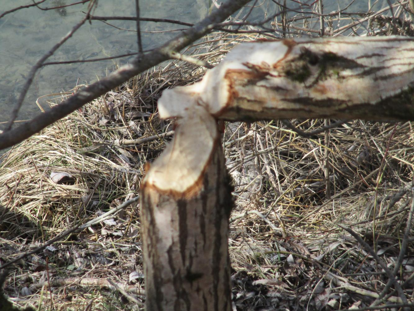 Wie Forscher suchten die Kinder auch nach Tierspuren im Schnee und wurden schnell fündig! Auch Biberspuren wurden entdeckt, und mit den Holspänen wurde gleich eine tolle Kette gebastelt!