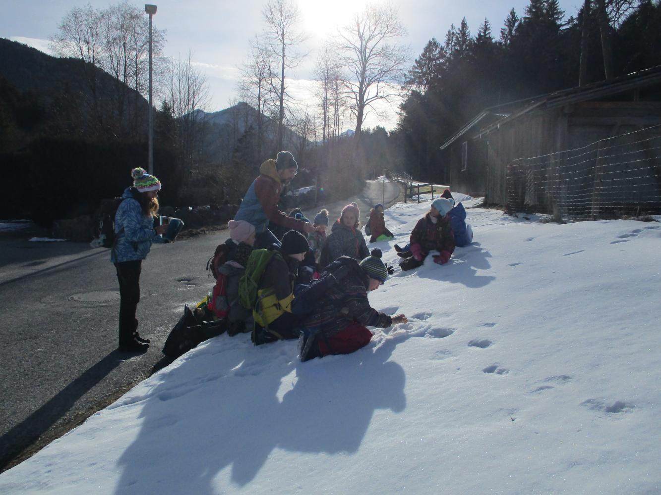 Begriffe wie Winterschlaf, Winterruhe und Winterstarre wurden genau erklärt und die Unterschiede herausgearbeitet. Winteraktive Tiere, Standvögel, Zugvögel - alles Themen, die die Kinder sehr begeisterten!