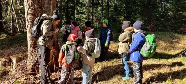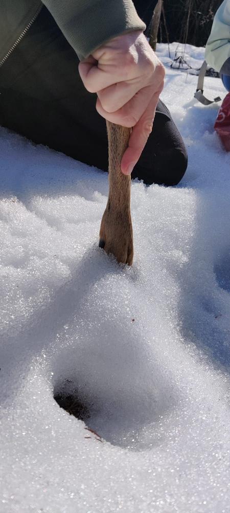 Dabei erfuhren sie von der Naturführerin Sabine allerhand über Tierspuren, Tierlosungen, Tierfelle, Schädelknochen, Eiskristalle, Ameisenhaufen, alte Bäume usw.