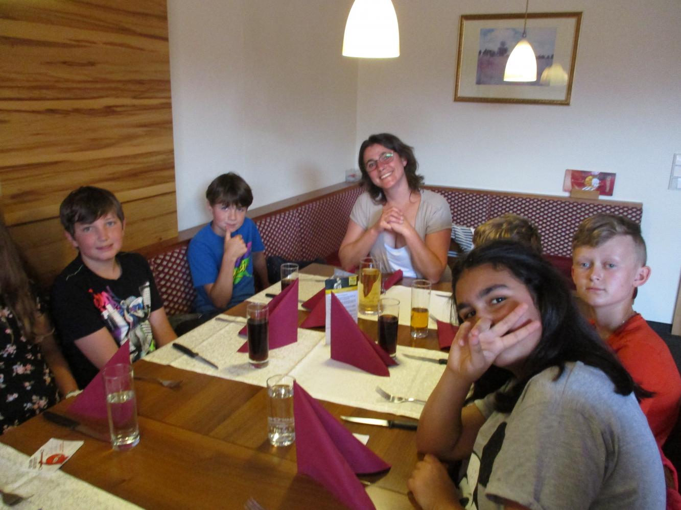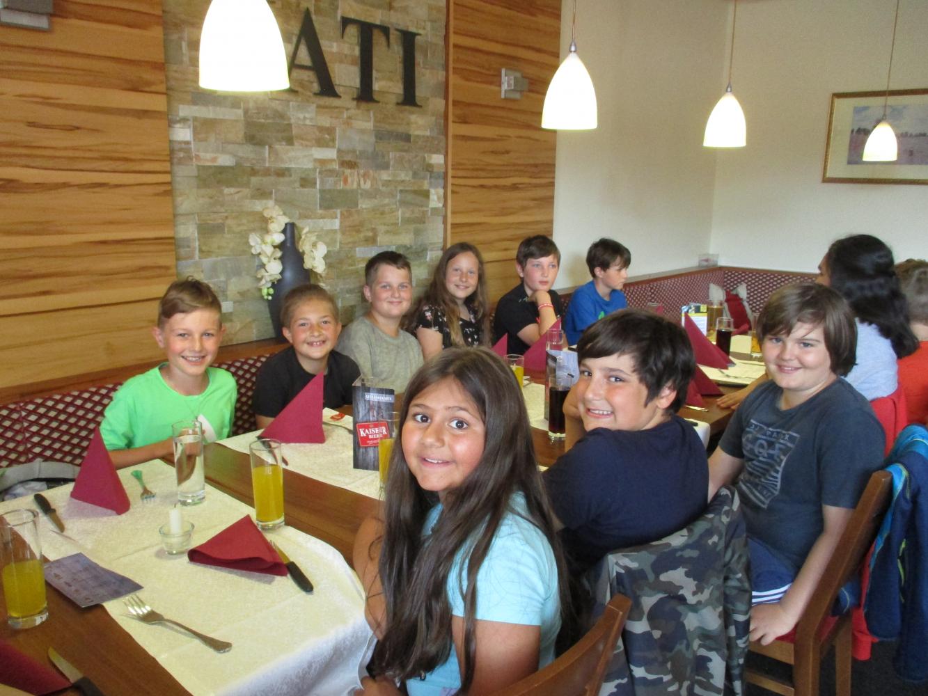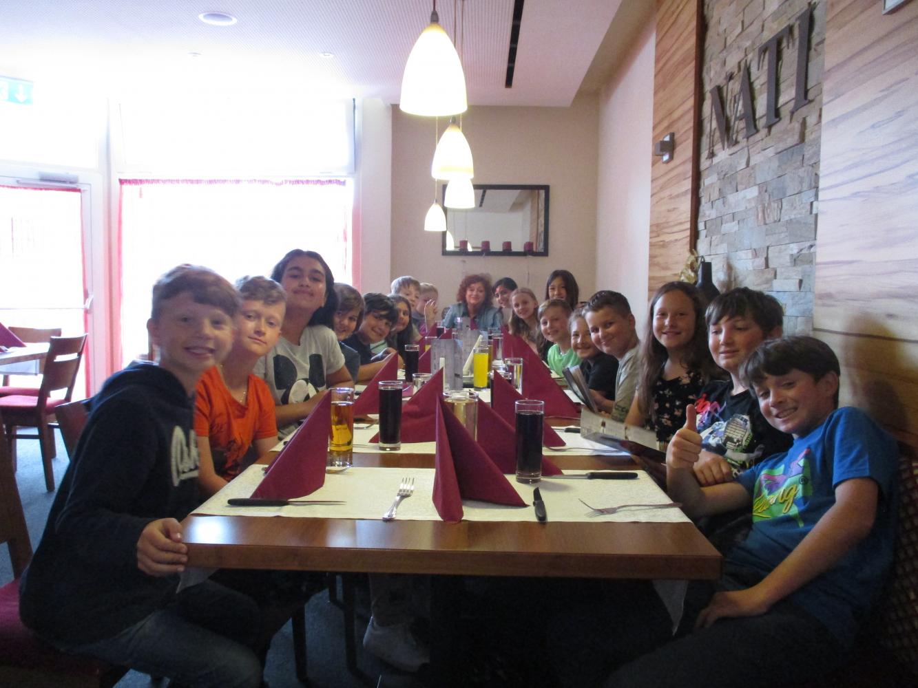 Im letzten Schuljahr gewann Jakob die Weihnachtsaktion der Reuttener Kaufmannschaft. Dafür erhielt die Klasse einen Gutschein im Wert von €100,-. Die Kinder einigten sich, damit Pizza essen zu gehen. Nun konnten wir diesen Gutschein endlich gemeinsam einlösen.