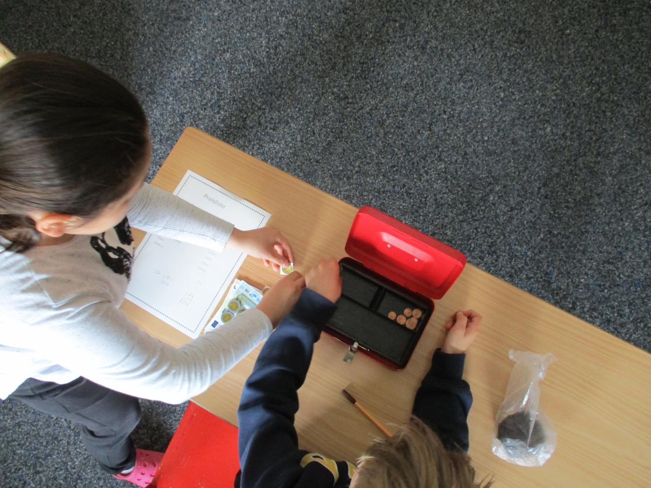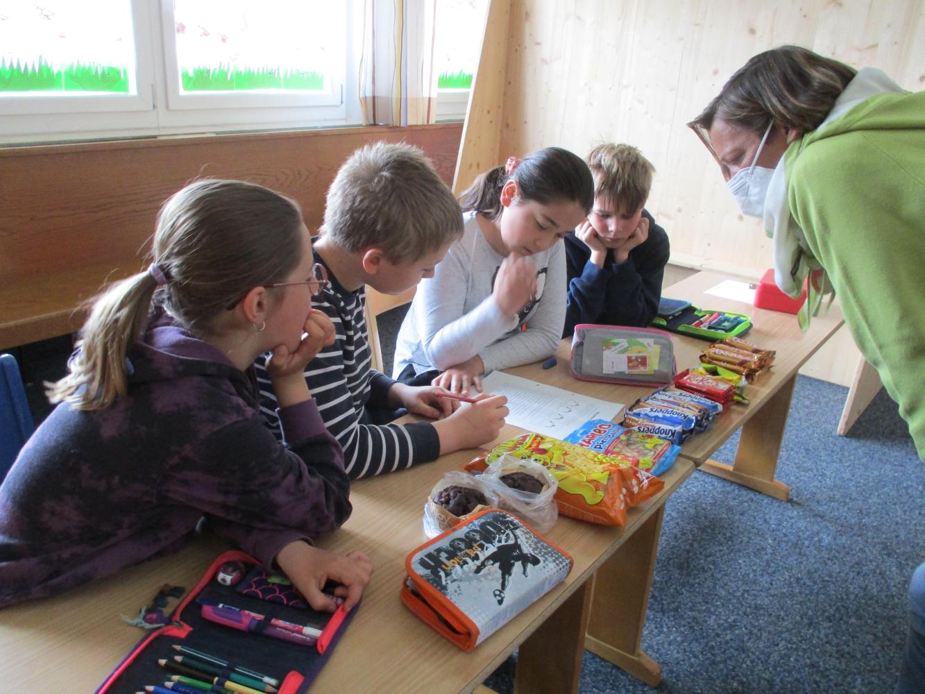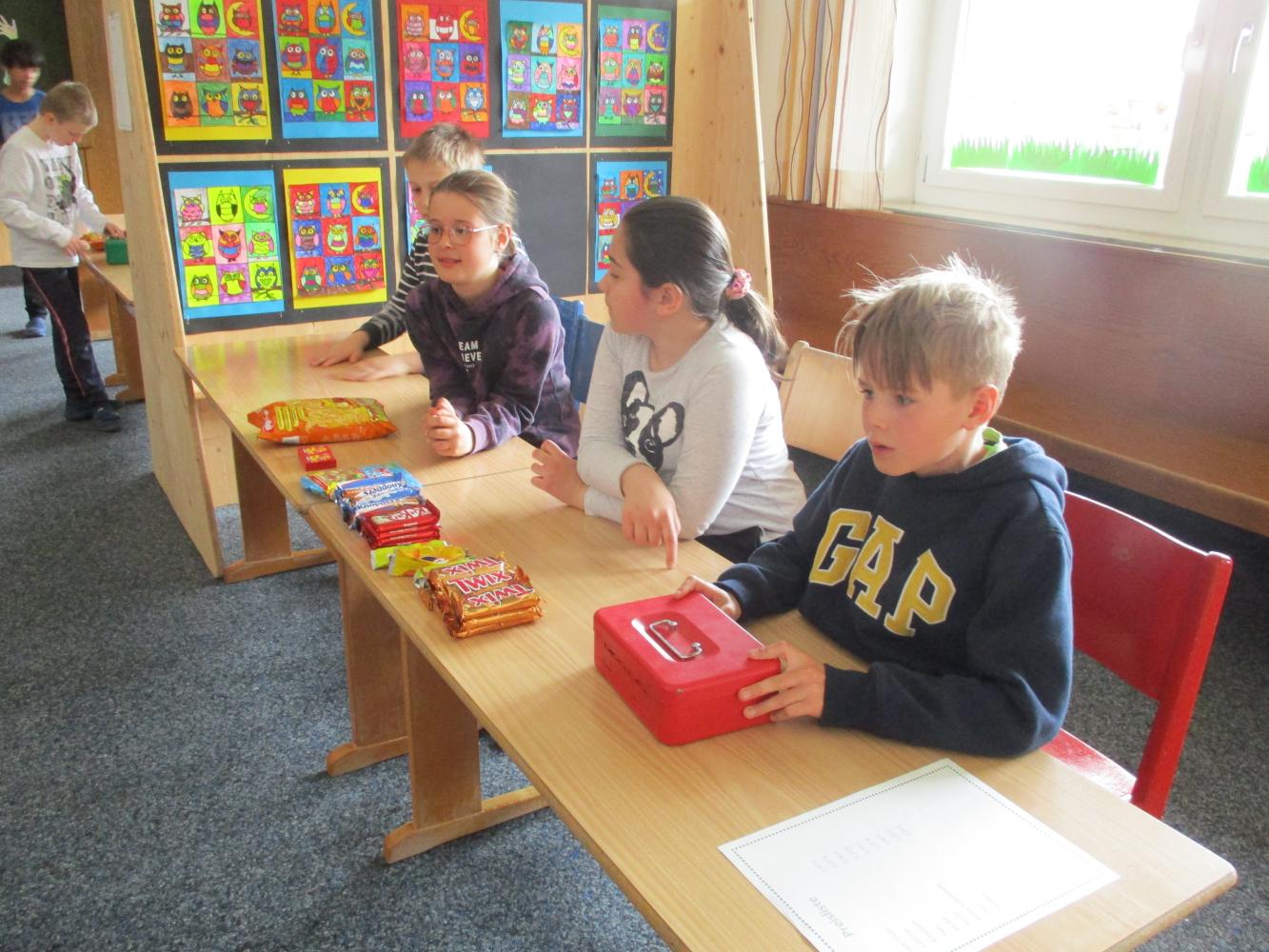 Zuerst mussten viele verschiedene Lebensmittel im Schulhaus gesucht und natürlich gefunden werden. Einkaufsaufträge mussten erfüllt, Preislisten richtig gelesen werden und der Zahlungsvorgang - egal ob in bar oder mit Karte - musste richtig abgewickelt werden. Zahlreiche Fragen zum Thema "Einkaufen" mussten beantwortet werden und der Ansporn dazu war groß, gab es doch für den Sieger Eintrittskarten für die Alpentherme zu gewinnen. Die Trostpreise waren aber auch sehr lecker!!!