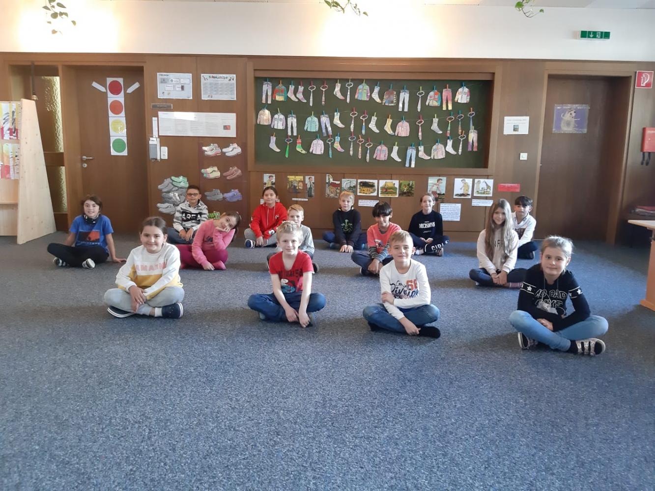 Lehrerin und Bibliothekarin Katrin las zum heurigen Tiroler Vorlesetag (20.11.2020) jeder Klasse das Bilderbuch "Riese Rick macht sich schick" vor.