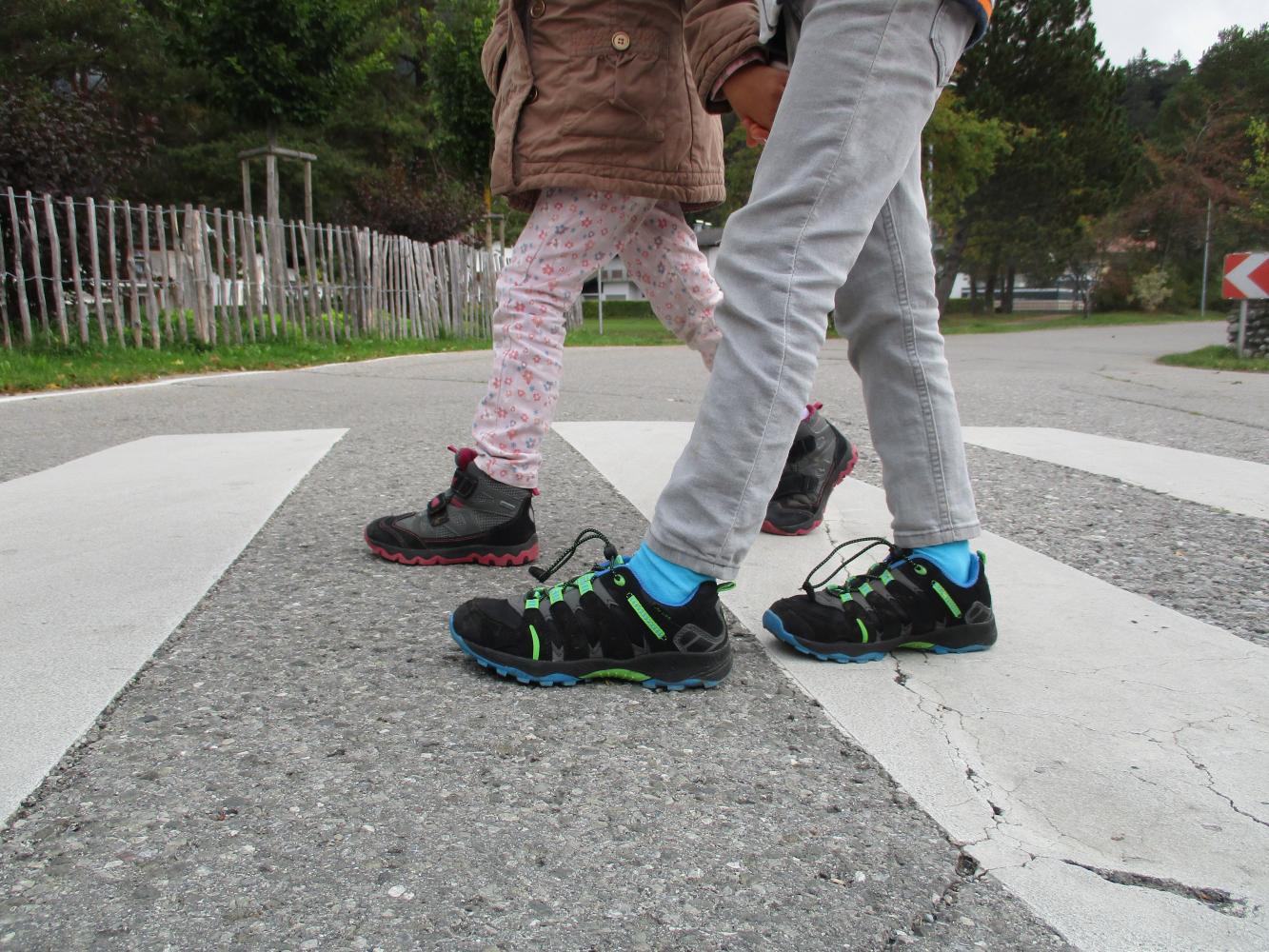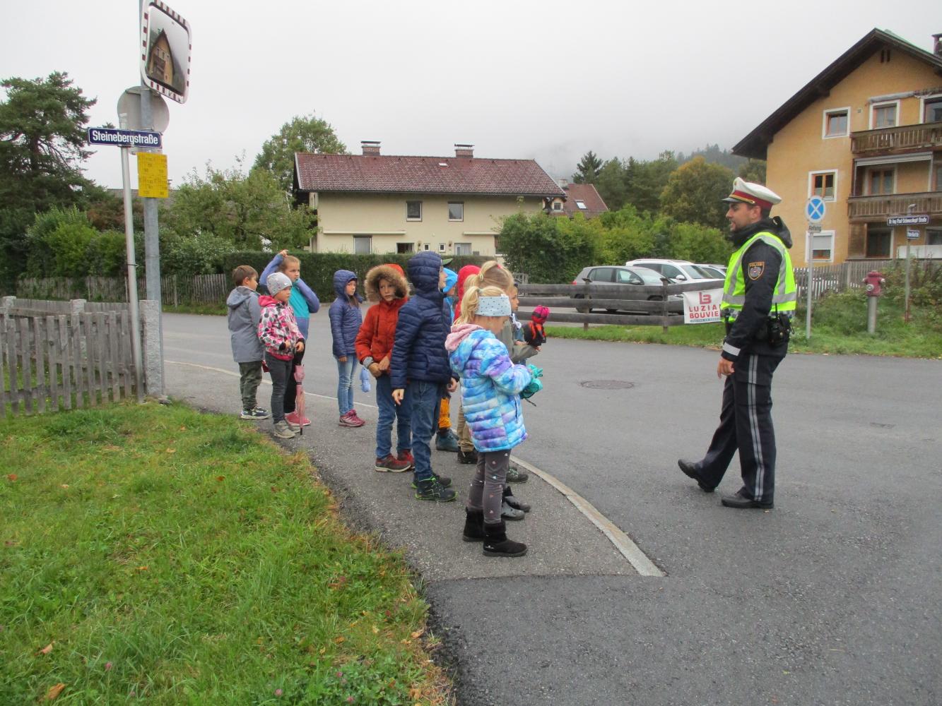 Danach gingen die Schüler hinaus und übten das sichere Überqueren der Straße mit und ohne Zebrastreifen!