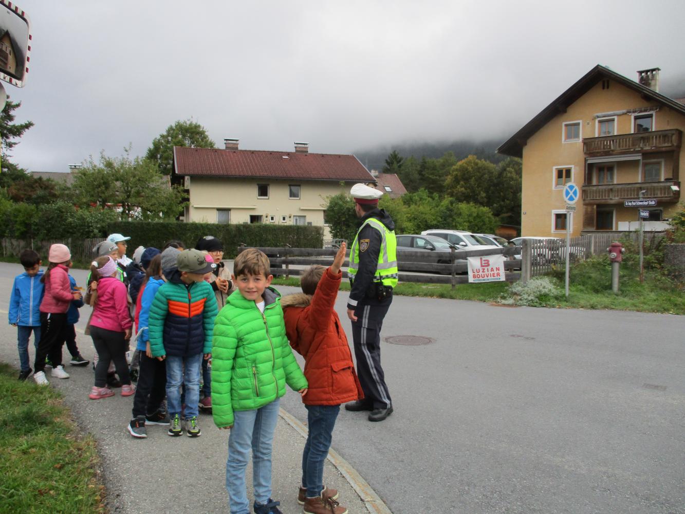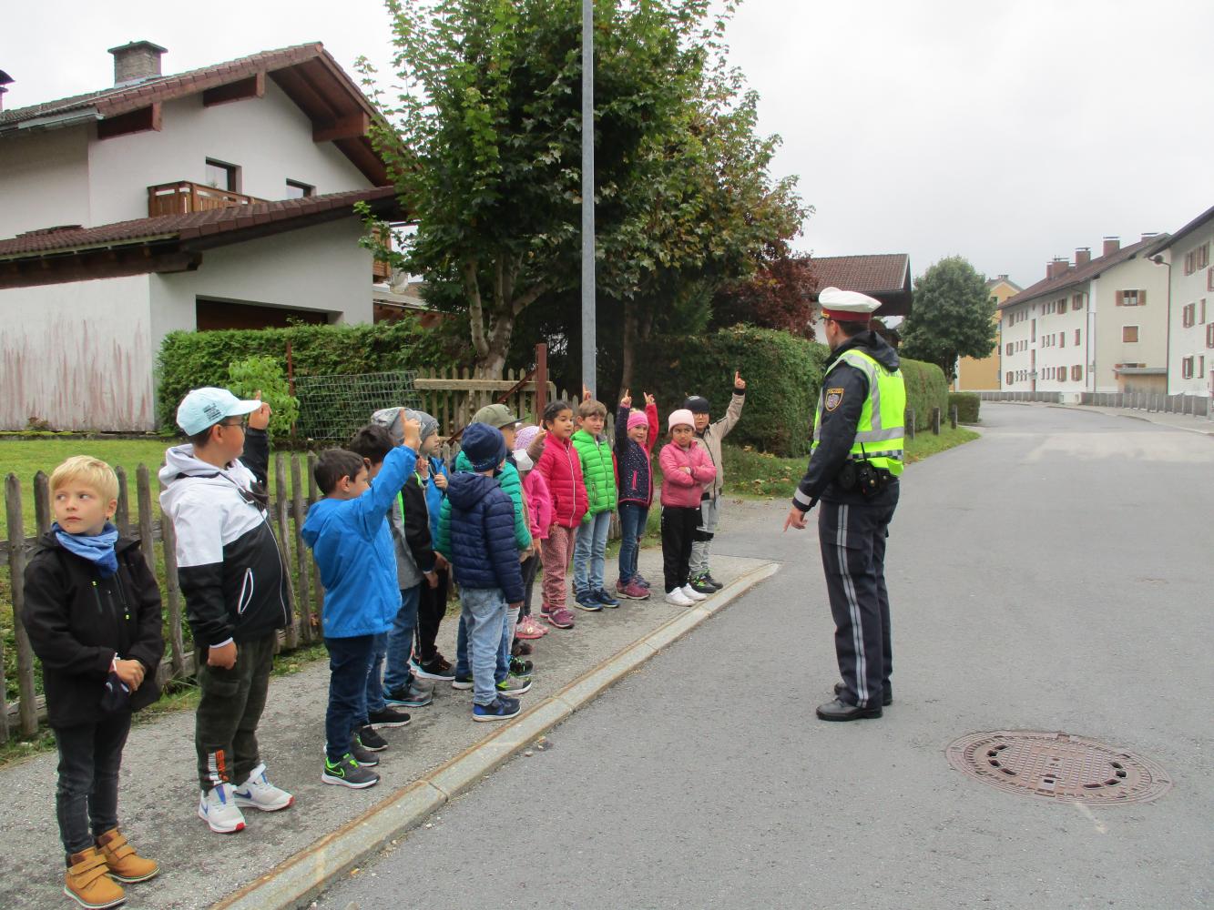 Heute (05.10.2021) besuchte Polizist Simon die Kinder der ersten und zweiten Schulstufe.