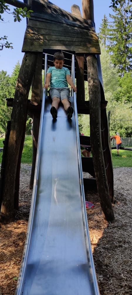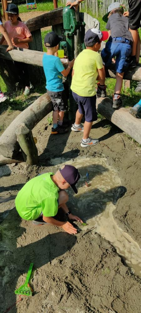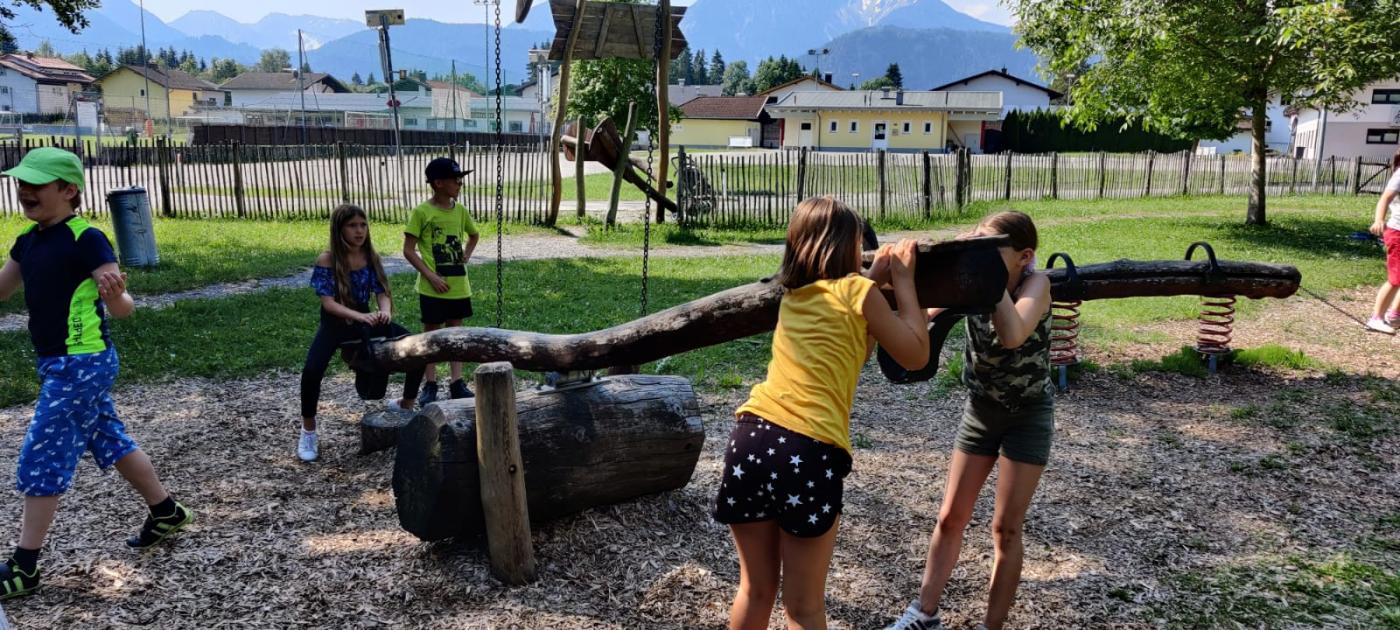 Bei schönstem Wetter (18.06.2021) wanderten die 1. und 3. Klasse gemeinsam zum Spielplatz nach Lechaschau. Dort wurde zuerst gejausnet und dann voller Freude gespielt, geklettert, gerutscht, geschaukelt, gewippt und balanciert. Besonders begehrt waren die Wasserspielgeräte, sodass auch eine kleine Abkühlung dabei war!