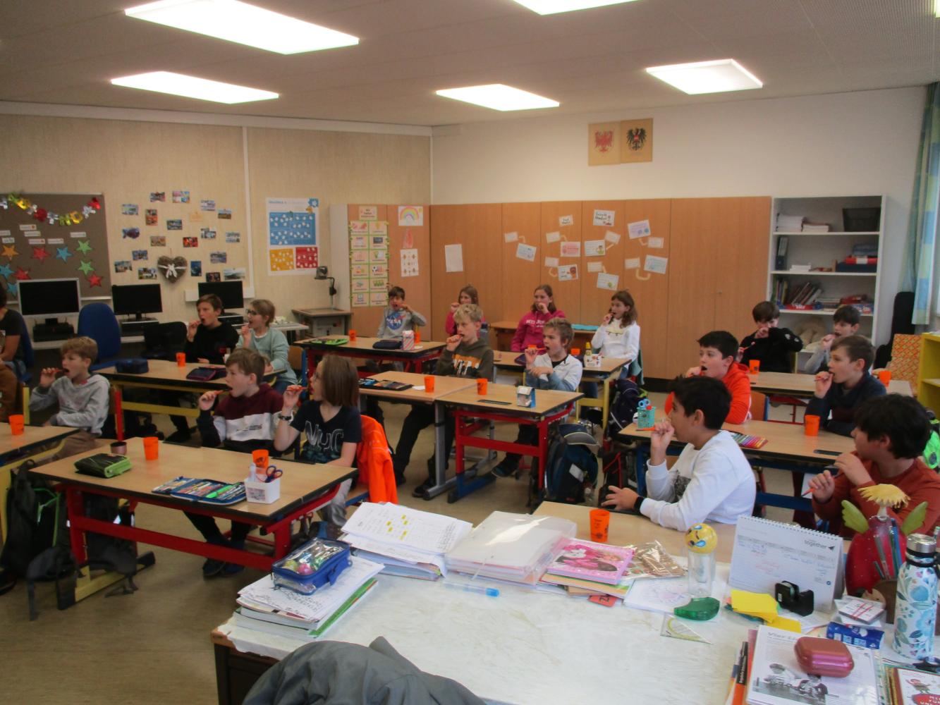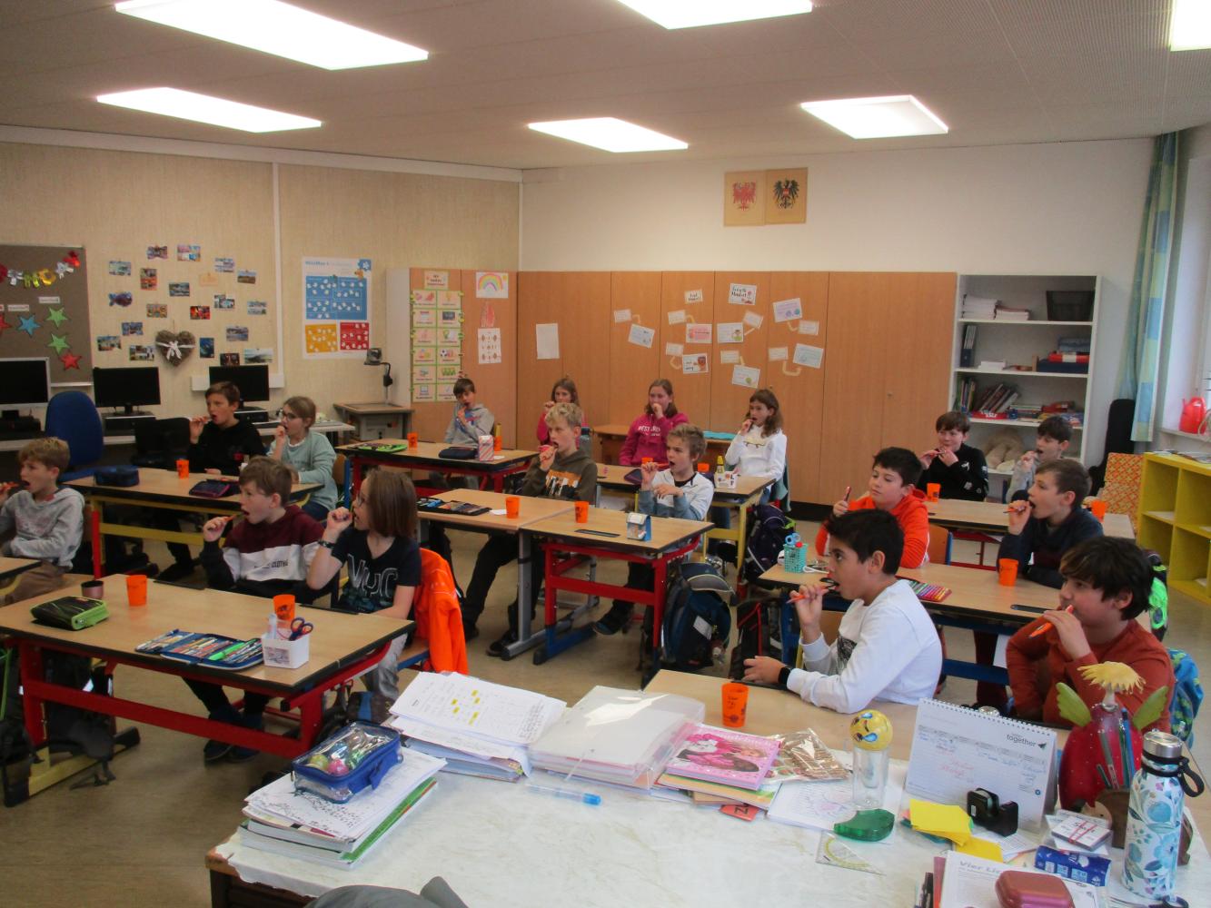 Heute (01.12.2022) fand die erste Zahngesundheitserziehung in diesem Schuljahr statt.